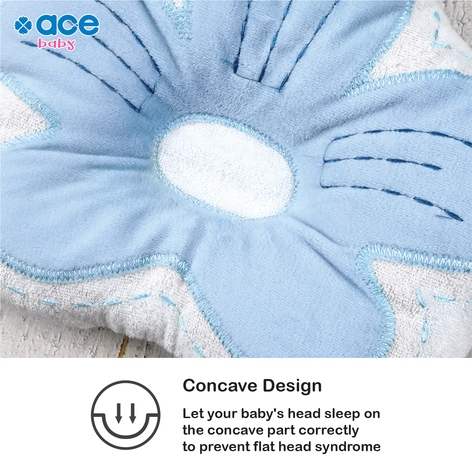 ACE BABY Nursing Pillow Infant Newborn Sleep Support Concave Cartoon Pillow Shaping Cushion Prevent Flat Head