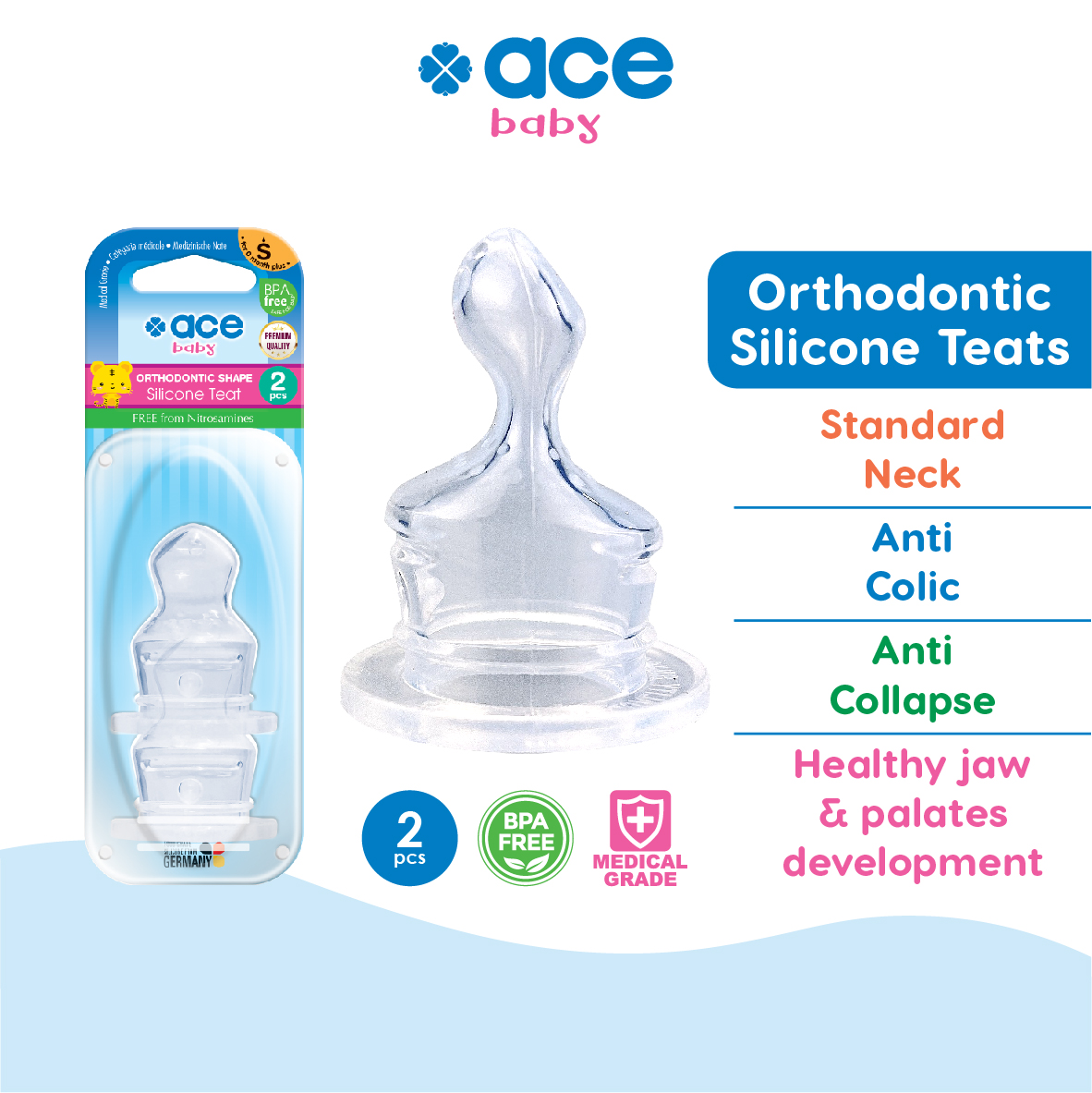 ACE BABY Orthodontic Silicone Teats (2 PCS) Anti Colic BPA Free 5 Sizes Standard Neck Milk Bottle Nipples Puting Susu
