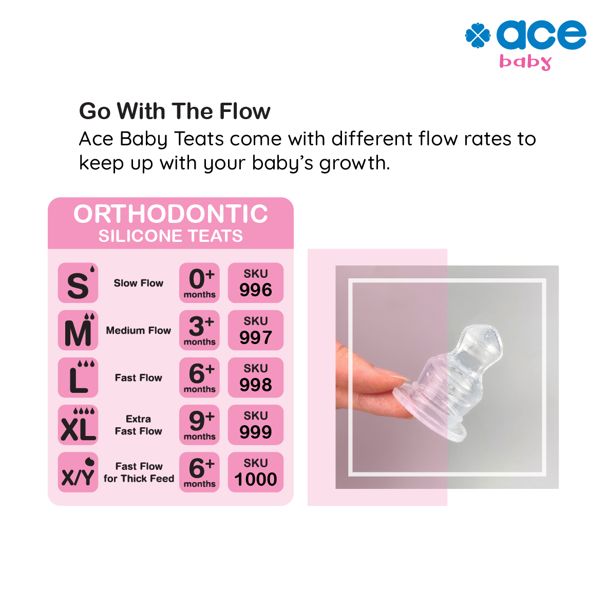 ACE BABY Standard Neck Silicone Teats Anti Colic BPA Free Milk Bottle Nipples