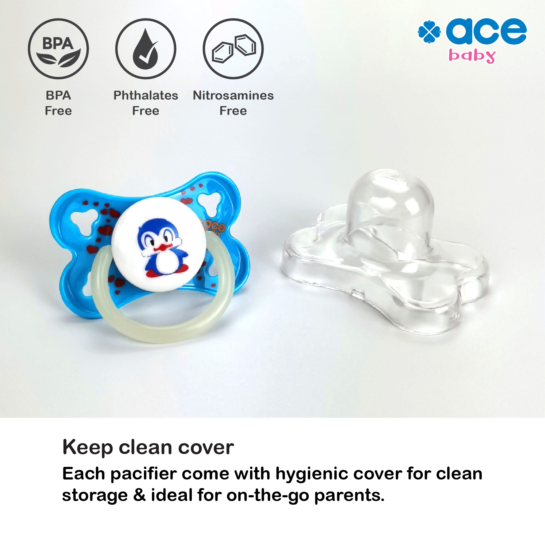 ACE BABY Pacifier Soother (Cherry/Long/Newborn) 0-18+ Months Silicone Teat Glow In The Dark Puting Hisap Bayi