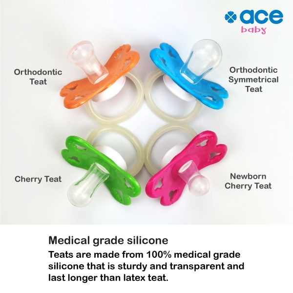 ACE BABY Pacifier Soother (Orthodontic/ Symmetrical/Cherry) 0-18+ Months Silicone Teat Butterfly Puting Hisap Bayi