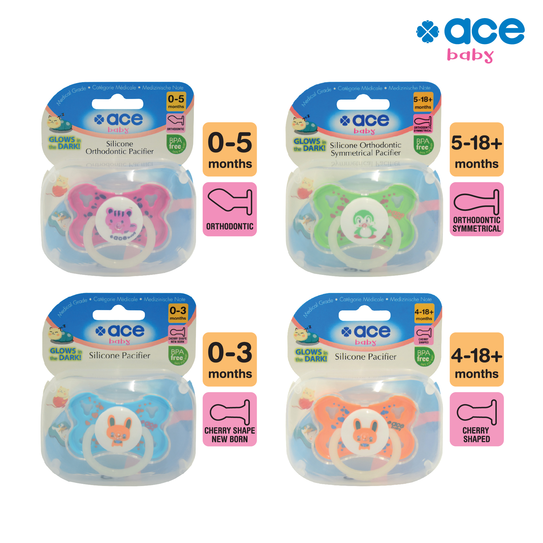ACE BABY Pacifier Soother (Orthodontic/Symmetrical/Cherry) Silicone Teat Butterfly Glow In The Dark Puting Hisap Bayi