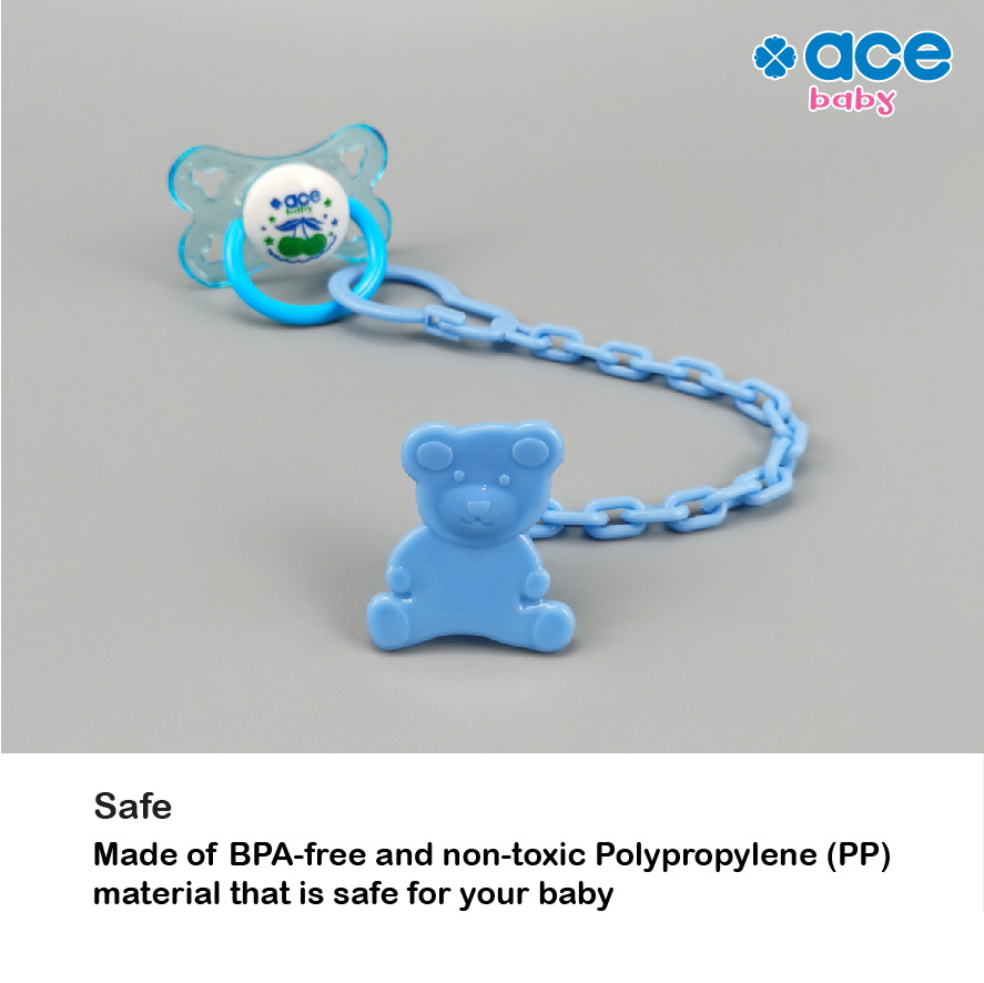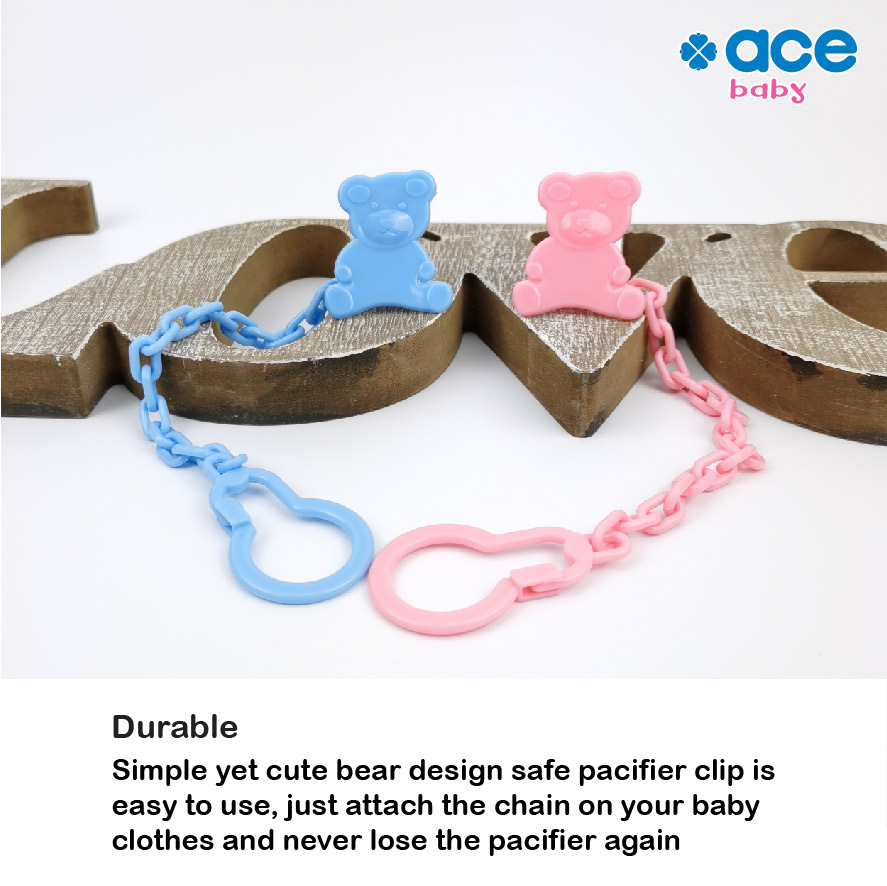 ACE BABY Pacifier Clipping Chain can be quickly attached on clothing, durable and convenient tool to ensure parents can keep track of your baby’s pacifier.