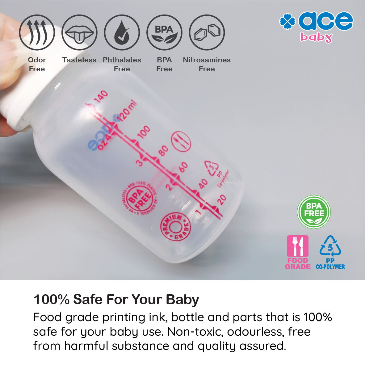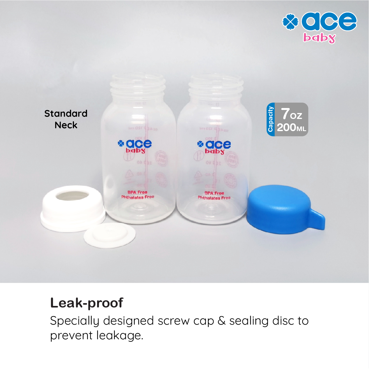 ACE BABY PP Standard Neck Milk Storage Bottle is designed for mothers to store extended breast milk for safer and longer storage period.