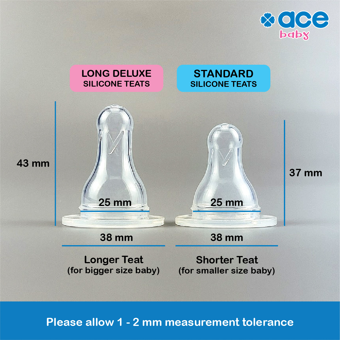 • Mimic mother’s nipple to provide your baby with the comfort and familiarity. Compatible with all Ace Baby standard neck feeding bottles.